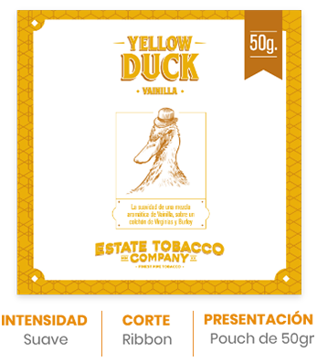 Conocé nuestro tabaco de pipa de Estate Tobacco Company, nuestro Yellow Duck Vainilla. Un aromático clásico a vainilla, pero el equipo de Estate Tobacco Company no quiso quedarse solo en eso. Los aromas son muy sutiles, tan suaves que a veces, son casi imperceptibles, hasta que la vainilla nos llega como un oasis de sabor. Recomendamos probarlo con un té, un viernes por la tarde, para disfrutar las buenas cosas que tiene la vida para darnos.